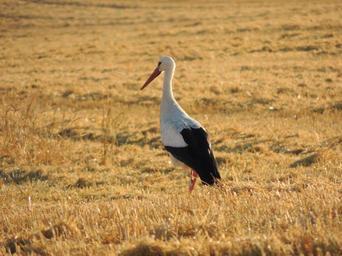 Keywords: stork bird harvest field evening straw summer harvested