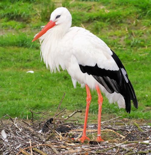 Keywords: stork bird plumage animal rattle stork meadow nature nest white stork feather large beak bill germany grass close storchennest