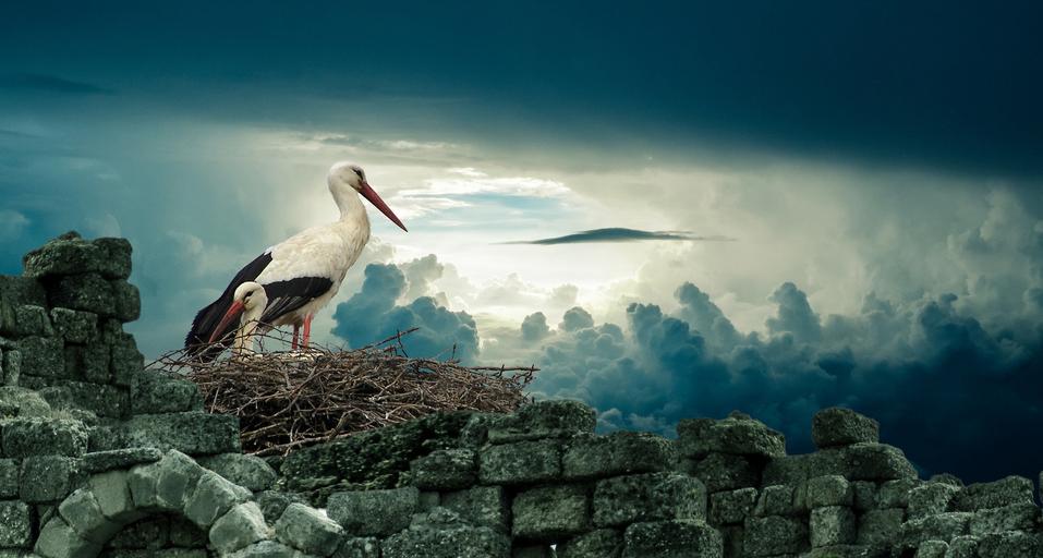 | Keywords: stork nest bird nature wildlife animal beak sky fauna white black feather wild care summer family clear couple blue outdoor pair wing spring freedom beautiful two background beauty baby flight color migrant migratory fly home high love outdoors eggs natural |