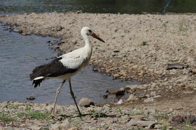 Keywords: stork wading birds tall long legs black white feathers plumage wildlife single alone isolated fauna nature water lake rivers swamp
