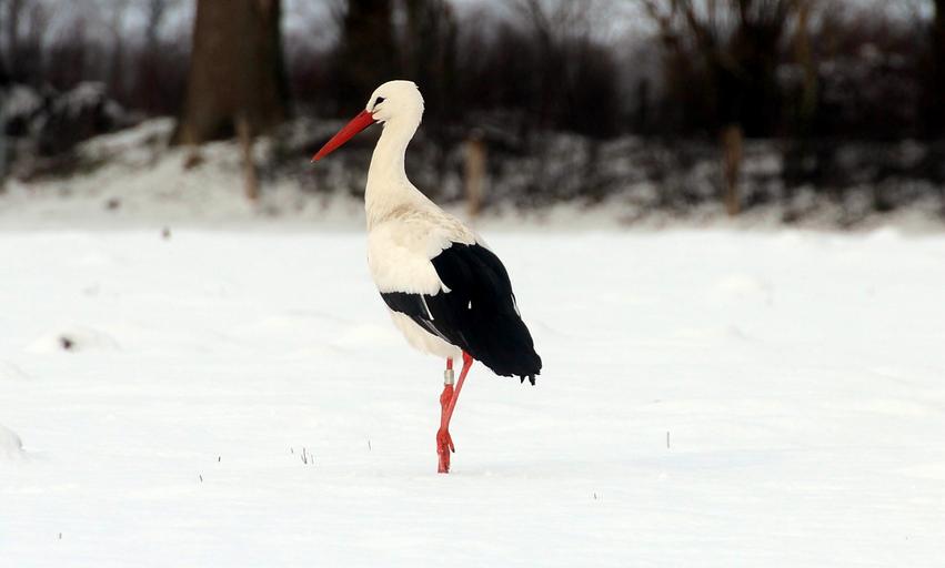 Keywords: storks white stork bird animals bill rattle stork ciconia ciconia nature pride animal portrait black and white snow