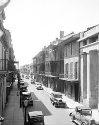 | Keywords: StPeterStNOLA1934Koch.jpg French Quarter of New Orleans 1934 St Peter Street looking lakewards; Old Arsenal building at right Photograph by Richard Koch for Historic American Buildings Survey via Library of Congress website http //loc gov/pictures/item/LA0112/ 1934-06 Richard Koch HABS LA 36-NEWOR 9-1 1934 in New Orleans St Peter Street French Quarter automobiles in New Orleans |
