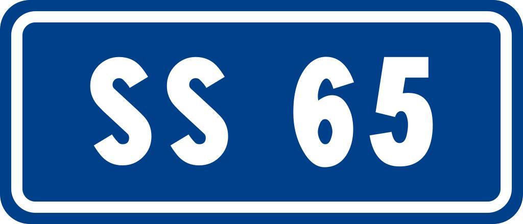 Keywords: Strada Statale 65 Italia.svg Simbolo della SS 65 Fatto da me basato su lavoro esistente 2007-08-09 Nicovin Diagrams of state road signs of Italy 065 Strada Statale 65 della Futa 65 number