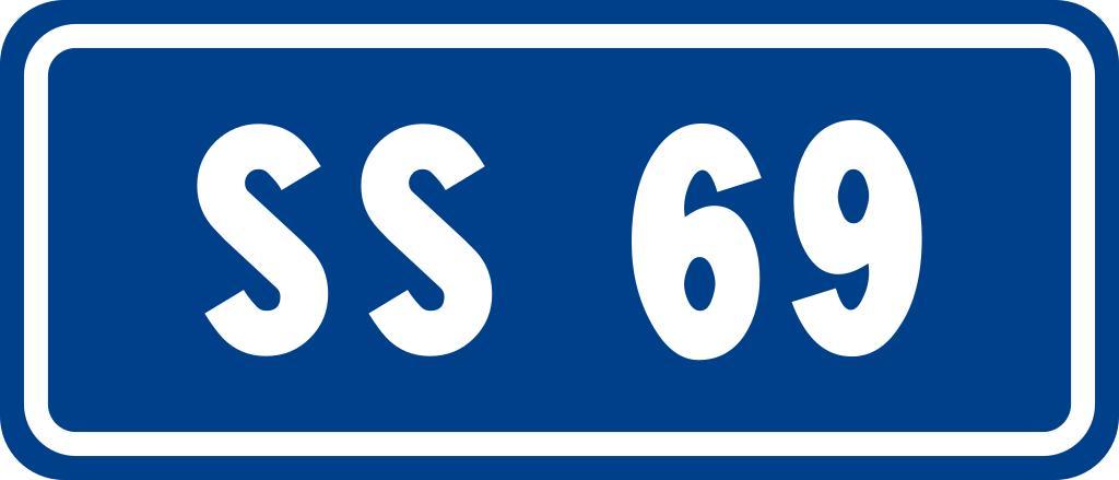 Keywords: Strada Statale 69 Italia.svg Simbolo della SS 69 Fatto da me basato su lavoro esistente 2007-08-09 Nicovin Strada Statale 69 di Val d'Arno Diagrams of state road signs of Italy 069 69 number