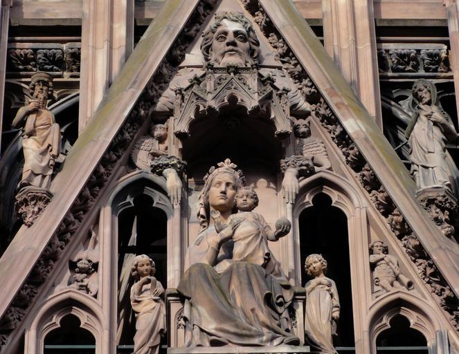 | Keywords: StrasbourgCathFacaW 58.JPG Alsace Bas-Rhin Strasbourg Cathédrale Notre-Dame Façade occidentale Couronnement du portail principal Vierge à l'enfant et mains de Dieu own 2012 Ralph Hammann 48 34 53 628 N 7 45 0 612 E alt 151 3_source exif_heading 50 25 Central portal of the western facade of Notre-Dame de Strasbourg Photographs of Strasbourg by Ralph Hammann Gothic statues of Notre-Dame de Strasbourg Statues of Notre-Dame de Strasbourg Outside Statues of Madonna and Child in Bas-Rhin Strasbourg Cathedrale Sculptures of God the Father Taken with Sony DSC-HX5V Cc-zero |