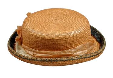 Keywords: straw hat boys pork-pie hat vintage antique 19th century plaited natural straw silk ribbon old silk ribbon design fashion victorian weave transparent background