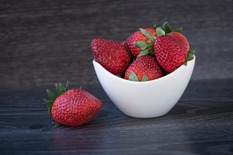 Keywords: strawberries red ripe frisch healthy fruit soft fruit sweet delicious food eat bless you nutrition vegan vitamins minerals vital substances natural product bowl vessel close still life food-photography