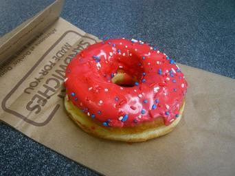 | Keywords: Strawberry Donut.jpg 42 2106 -73 0318 fr Un donut à la Fraise en A strawberry donut from Dunkin Donuts 2012-07-19 16 36 34 own Guigui575 Picture taken at Boston South Station cc-zero Uploaded with UploadWizard Toroidal doughnuts Dunkin' Donuts products Powdered sugar-glazed doughnuts Sprinkles Pink icing food Strawberry desserts |