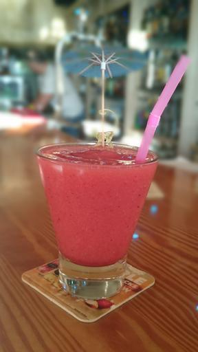 Keywords: strawberry drink ice straw pink cockail red drink portion