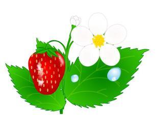Keywords: strawberry flowers leaves plant green white red colorful still life blooms blooming floral blossom fruit dew drops buds
