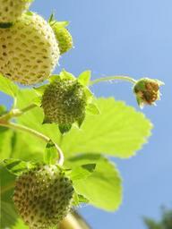 Keywords: strawberry green fruit leaves strawberries seeds berries unripe ripening