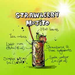 Keywords: strawberry mojito cocktail drink alcohol recipe party alcoholic summer summer colors celebrate refreshment good mood benefit from socializing