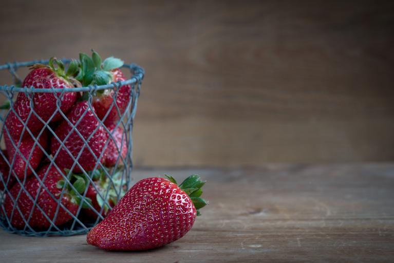 Keywords: strawberry red ripe frisch harvest soft fruit fruit basket metal basket eat food natural product nutrition healthy delicious vitamins minerals vital substances bless you strawberry time berries sweet close food-photography