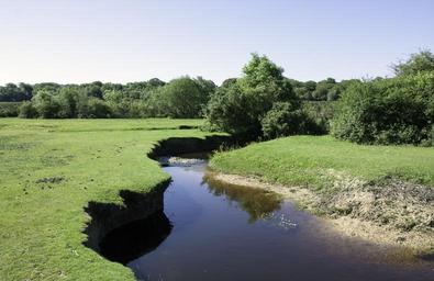 Keywords: stream countryside brook nature landscape water river rural forest tree scenic green outdoors summer sky season country grass natural view england english hampshire new forest trees uk britain