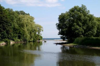Keywords: stream creek water trees green sky blue