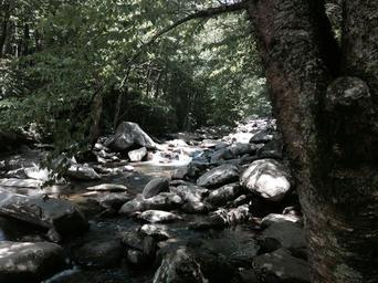 Keywords: stream hike outdoors creek mountain forest water nature landscape rock