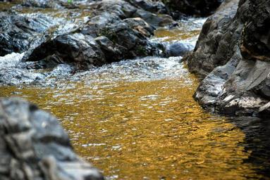 Keywords: stream water rocks stones mountains creek river flowing flows current nature landscape clear waves transparent golden yellow sand underwater