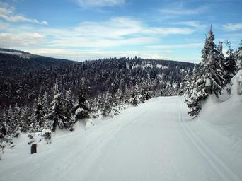 Keywords: Střední vrch.jpg en Střední vrch aka Homole in Eagle Mountains cs Střední vrch neboli Homole v Orlických horách od jihu v pozadí Koruna own Railfort Maoman 2010-01-24 Orlické hory
