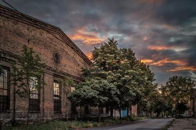 Keywords: street building sunset dusk hdr clouds in the evening light nightfall when night falls
