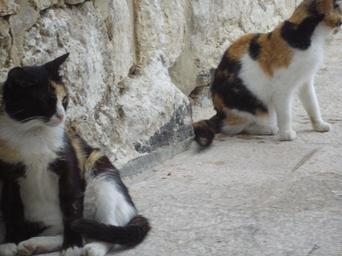 Keywords: Street cats of 'Old Jerusalem city'.JPG en Stray street cats inside Old Jerusalem city Own Rudolph A furtado Old City Jerusalem Feral cats in Israel Black tortoiseshell and white cats Two cats Cats of Jerusalem