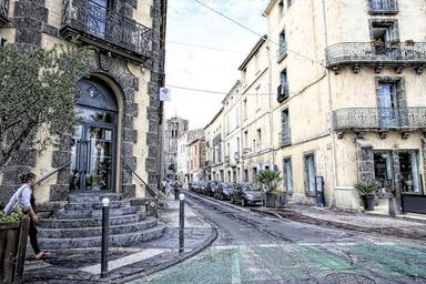 Keywords: street city urban shops sidewalk woman urban landscape france agde district