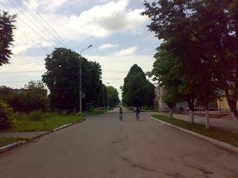 Keywords: Street in Krasyliv.jpg en Street in Krasyliv uk Вулиця в К асилові 50- іччя Жовтня де озташована К асилівська ЦРЛ own Pavlo Chemist 2010-06-28 Krasyliv