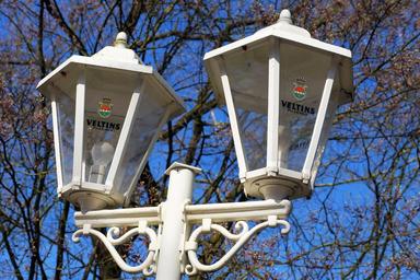 Keywords: street lamp advertising white eye catcher pavement city caption