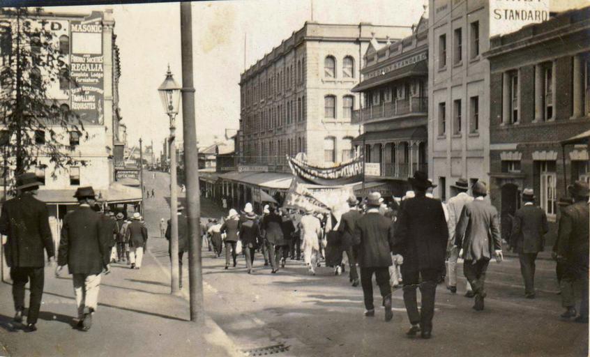 Keywords: brisbane march protest banners edward street edwardstreet cru årgang jahrgang vendimia road This street march is going down Edward Street towards Adelaide Street in Brisbane. The men with white helmets are policemen and there appears to be a couple of women in long skirts in the group. I can't tell what is written on the banners unfortunately. This street march is going down Edward Street towards Adelaide Street in Brisbane. The men with white helmets are policemen and there appears to be a couple of women in long skirts in the group. I can't tell what is written on the banners unfortunately. |