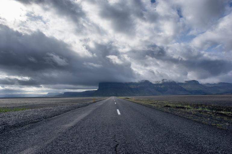 Keywords: street road straight endless landscape clouds nobody freeway travel roadtrip vanishing point mountains distance infrastructure