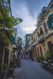 Keywords: street scooters mopeds motorbikes houses shutters balconies people