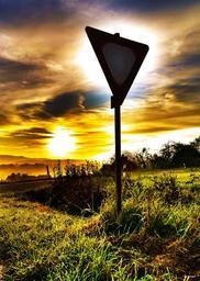 Keywords: street sign attention right of way back light sunset traffic sign landscape silhouette shield hdr