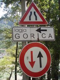 | Keywords: Street sign, Berat, Albania.JPG a street sign at the bridge leading to Gorica Berati Albania own taken by myself 2006-08 User Terfili Berat Directional road signs Bottleneck priority road signs Traffic bottleneck signs Informational road signs in Albania Road signs in Albania Photographs of bottleneck priority road signs |
