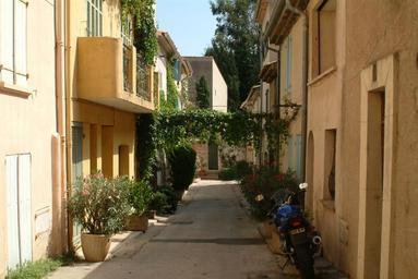 Keywords: street sun houses lane colors heat