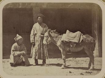 | Keywords: Street Types of Central Asian Cities. Two Men with a Donkey WDL11120.png Artwork ru Кун Александ Людвигович 1840 1888 гг fr Kun Aleksandr L 1840-1888 en Kun Aleksandr L 1840-1888 zh 亚历山大·L· ,1840-1888 年 pt Kun Aleksandr L 1840-1888 ar كُن، ألكسندر ل ، 1840-1888 es Kun Aleksandr L 1840-1888 ru Уличные типы с еднеазиатских го одов Двое мужчин с ослом fr Les rues des villes d'Asie centrale Deux hommes avec un âne en Street Types of Central Asian Cities Two Men with a Donkey zh 中亚城市的各类街道 两名男子与 头毛驴 pt Tipos de ruas de cidades centro-asiáticas Dois homens com um burro ar أنواع الشوارع في مدن وسط آسيا رجلان وحمار ru Эта фотог афия входит в этног афическую часть <em> Ту кестанского альбома </em><em></em> всесто оннего исследования Цент альной Азии п едп инятого после того как в 1860-х годах в егионе установилось господство Российской импе ии Альбом созданный по аспо яжению гене ала Константина Пет овича фон Кауфмана 1818 1882 годы пе вого гене ал-губе нато а оссийского Ту кестана состоит из четы ех частей в шести томах «Часть а хеологическая» два тома «Часть этног афическая» два тома «Часть п омысловая» один том и «Часть исто ическая» один том Основным составителем альбома был оссийский востоковед Александ Людвигович Кун аботавший совместно с иколаем Венедиктовичем Богаевским В альбоме п едставлено около 1200 фотог афий а также а хитекту ные планы аква ельные исунки и ка ты «Часть этног афическая» включает в себя 491отдельную фотог афию на 163 листах а фотог афиях изоб ажены п едставители азличных на одов егиона листы 1 33 повседневная жизнь и итуалы листы 34 91 а также виды де евень и го одов уличные то говцы и комме ческая деятельность листы 92 163 <br>Ослы; Этног афические фотог афии; Г упповые по т еты; Фотог афические исследования; По т етные фотог афии; Тю кские на оды fr Cette photographie est extraite de la partie ethnographique de l'<em>Album du Turkestan</em> étude visuelle complète de l'Asie centrale entreprise après que l'Empire russe prit le contrôle de la région dans les années 1860 Commandé par le général Konstantin Petrovich von Kaufman 1818 1882 premier gouverneur général du Turkestan russe l'album est composé de six volumes en quatre parties la partie archéologique deux volumes la partie ethnologique deux volumes la partie sur les métiers un volume et la partie historique un volume L'album fut essentiellement compilé par l'orientaliste russe Aleksandr L Kun assisté de Nikolai V Bogaevskii Il comporte près de 1200 photographies et inclut également des plans architecturaux des dessins à l'aquarelle et des cartes La partie ethnographique compte 491 photographies sur 163 planches montrant des individus des différentes peuplades de la région planches 1 à 33 des scènes de la vie quotidienne et des rites planches 34 à 91 ainsi que des vues de villages et de villes de vendeurs ambulants et d'activités commerciales planches 92 à 163 <br>Ânes; Photographies ethnographiques; Portraits de groupe; Inventaires photographiques; Portraits photographiques; Peuples turciques en This photograph is from the ethnographical part of <em>Turkestan Album</em><em> </em>a comprehensive visual survey of Central Asia undertaken after imperial Russia assumed control of the region in the 1860s Commissioned by General Konstantin Petrovich von Kaufman 1818 82 the first governor-general of Russian Turkestan the album is in four parts spanning six volumes Archaeological Part two volumes ; Ethnographic Part two volumes ; Trades Part one volume ; and Historical Part one volume The principal compiler was Russian Orientalist Aleksandr L Kun who was assisted by Nikolai V Bogaevskii The album contains some 1 200 photographs along with architectural plans watercolor drawings and maps The Ethnographic Part includes 491 individual photographs on 163 plates The photographs show individuals representing the different peoples of the region Plates 1 33 ; daily life and rituals Plates 34 91 ; and views of villages and cities street vendors and commercial activities Plates 92 163 <br>Donkeys; Ethnographic photographs; Group portraits; Photographic surveys; Portrait photographs; Turkic peoples zh 这张照片出自<em> 其斯 相册 </em>的民族部分,该相册是俄罗斯 国 19 世纪 60 年代取得中亚控制 后, 手制 的 部针对该 区的综合 图像调查记录 相册由俄罗斯驻 其斯 (俄罗斯 国中亚属 的名称)首任 康斯 丁·彼得罗维奇·凡· 夫曼(Konstantin Petrovich von Kaufman,1818 82 年)将军赞助完成,共分六卷,四个部分: 古部分 (两卷); 民族部分 (两卷); 贸易部分 ( 卷)和 历史部分 ( 卷) 相册的主要编纂人是俄罗斯 方学 亚历山大·L· Aleksandr L Kun 亚历山大是 尼可莱·V·柏盖维斯基 Nikolai V Bogaevskii 的协助下完成相册的编纂 相册共含 1200 张照片,另 建筑平 图 水彩画和 图 民族部分 包括 491 张