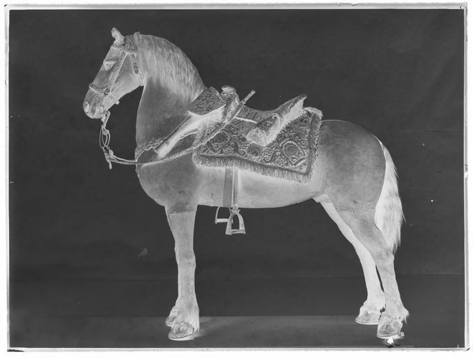 Keywords: Streiff - Livrustkammaren - 51506-negative.tif Sidhänvisningar är om inte annat anges till Gustaf II Adolf vid Lützen Hästhud med man och hovar monterad på trästomme gjord i sex delar - huvud hals och kropp samt fyra ben Delarna sammanfogade med tappar fastlåsta med tränaglar sid 133 Monteringen enligt dressyrskolornas uppfattning av en korrekt uppställd häst sid 136 Hästhuden bereddes i Wolgast våren 1633 sid 134 not 2 kvitton 12 april-5 maj Hästen följde med i sorgetåget genom Tyskland till Wolgast två kvitton ett utställt för en David hovsmed och ett för en viss Kasten Meyener visar att den dött i Wolgast och att huden tillvaratagits sid 72 Wolgasträkenskaperna verifikation 1031-1032 Hästens namn omnämns första gången av ett ögonvittne till GIIA s lit de parade i Spandau den 16 dec 1632 Das Pferd darauf Ihr Maj geschossen worden welches man den Streefen genandt sid 71 Hästen såldes till kungen för 1000 Rdr Specie av kavalleriöversten Johann Streiff von Lauenstein enligt ett kvitto skrivet i Elbing 14/24 november 1631 se Danielsson sid 217 Beskrivning av Raimondo Montecuccoli 1654-03-28 <br/> Das Pferd hat einen hübschen Kopf und war vom starker der oldenburgischen ähnlichen Rasse Beskrivning 1768 sid 134 <br/> på långt håll synes denna fordna rödbruna wälwäxte Klipparen icke wara stor men håller dock Ryttarmål Den Svenska Fatburen IV 16/9 1768 Stockholm 1768 original caption Streiff - LRK 30402 Slaget vid Lützen 1632-11-06 size mm 1425 över korset monterad size mm 1460 manke size mm 1150 till bogled size mm 850 till bröstben LRK Gustav II Adolf av Sverige Johann Streiff von Lauenstein överste Livrustkammarens basutställning 1978 Gustav II Adolf 350 år efter Lützen 1982-1984 Westfaliska freden-utställningen place of origin original filename LN_A01436_001436 66967 inventory number LRK 30402 51506 CC0 Streiff - Livrustkammaren - 51506 tif <gallery caption Different images of same object > File Streiff - Livrustkammaren - 7219 tif File Gustav II Adolfs häst från Slaget vid Lützen 1632-11-06 kallad Streiff - Livrustkammaren - 77974 tif File Streiff - Livrustkammaren - 15807 tif File Gustav II Adolfs häst från Slaget vid Lützen 1632-11-06 kallad Streiff - Livrustkammaren - 77984 tif File Gustav II Adolfs häst från Slaget vid Lützen 1632-11-06 kallad Streiff - Livrustkammaren - 77975 tif File Gustav II Adolfs häst från Slaget vid Lützen 1632-11-06 kallad Streiff - Livrustkammaren - 60864 tif File Gustav II Adolfs häst från Slaget vid Lützen 1632-11-06 kallad Streiff - Livrustkammaren - 60854 tif File Gustav II Adolfs häst från Slaget vid Lützen 1632-11-06 kallad Streiff - Livrustkammaren - 18051 tif File Gustav II Adolfs häst från Slaget vid Lützen 1632-11-06 kallad Streiff - Livrustkammaren - 26623 tif File Gustav II Adolfs häst från Slaget vid Lützen 1632-11-06 kallad Streiff - Livrustkammaren - 9489 tif File Streiff - Livrustkammaren - 67172 tif File Streiff - Livrustkammaren - 84291 tif File Streiff - Livrustkammaren - 41490 tif File Streiff - Livrustkammaren - 34392 tif File Streiff - Livrustkammaren - 77080 tif File Streiff - Livrustkammaren - 84285 tif File Gustav II Adolfs häst från Slaget vid Lützen 1632-11-06 kallad Streiff - Livrustkammaren - 26613 tif File Streiff - Livrustkammaren - 7240 tif File Streiff - Livrustkammaren - 24364 tif File Gustav II Adolfs häst från Slaget vid Lützen 1632-11-06 kallad Streiff - Livrustkammaren - 69415 tif File Streiff - Livrustkammaren - 58610 tif File Streiff - Livrustkammaren - 17208 tif File Streiff - Livrustkammaren - 42912 tif File Gustav II Adolfs häst från Slaget vid Lützen 1632-11-06 kallad Streiff - Livrustkammaren - 930 tif File Streiff - Livrustkammaren - 24363 tif File Gustav II Adolfs häst från Slaget vid Lützen 1632-11-06 kallad Streiff - Livrustkammaren - 60853 tif File Streiff - Livrustkammaren - 32931 tif File Streiff - Livrustkammaren - 51472 tif File Streiff - Livrustkammaren - 75732 tif File Gustav II Adolfs häst från Slaget vid Lützen 1632-11-06 kallad Streiff - Livrustkammaren - 69426 tif File Gustav II Adolfs häst från Slaget vid Lützen 1632-11-06 kallad Streiff - Livrustkammaren - 940 tif File Gustav II Adolfs häst från Slaget vid Lützen 1632-11-06 kallad Streiff - Livrustkammaren - 69416 tif File Gustav II Adolfs häst från Slaget vid Lützen 1632-11-06 kallad Streiff - Livrustkammaren - 52303 tif File Gustav II Adolfs häst från Slaget vid Lützen 1632-11-06 kallad Streiff - Livrustkammaren - 9499 tif File Streiff - Livrustkammaren - 50043 tif File Streif - Livrustkammaren - 17264 tif File Gustav II Adolfs häst från Slaget vid Lützen 1632-11-06 kallad Streiff - Livrustkammaren - 43743 tif File Gustav II Adolfs häst från Slaget vid Lützen 1632-11-06 kallad Streiff - Livrustkammaren - 18061 tif File Streiff - Livrustkammaren - 50049 tif File Streiff - Livrustkammaren - 7246 tif File Streiff - Livrustkammaren - 42946 tif File Gustav II Adolfs häst från Slaget vid Lützen 1632-11-06 kallad Streiff - Livrustkammaren - 35184 tif File Streiff - Livrustkammaren - 84273 tif File Gustav II Adolfs häst från Slaget vid Lützen 1632-11-06 kallad Streiff - Livrustkammaren - 35174 tif File Gustav II Adolfs häst från Slaget vid Lützen 1632-11-06 kallad Streiff - Livrustkammaren - 43733 tif File Gustav II Adolfs häst från Slaget vid Lützen 1632-11-06 kallad Streiff - Livrustkammaren - 52293 tif </gallery> |