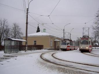 Keywords: StrelnaTramStation2008-12-20c.jpg Т амвайная конечная станция «Ст ельна» Tram terminal «Strelna» Own 2008-12-20 Dinamik Strelna tram station LVS-86 in Saint Petersburg Tram route 36 in Saint Petersburg