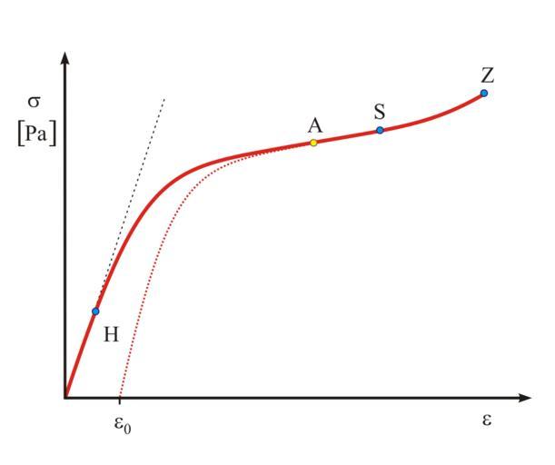 Keywords: Stress strain curve.svg en Stress strain curve of polymer pl Krzywa naprężenia od wydłużenia dla polimerów own 2008-03-14 Mpfiz Stress-strain curves