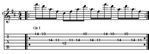 Keywords: String Skipping D-Dur.png Eigenanfertigung 2006-03-12 own assumed Red Rooster Guitar-Licks