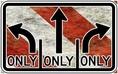 Keywords: stripes road red white dirty information boards special characters road sign arrows direction right next shield stop street sign