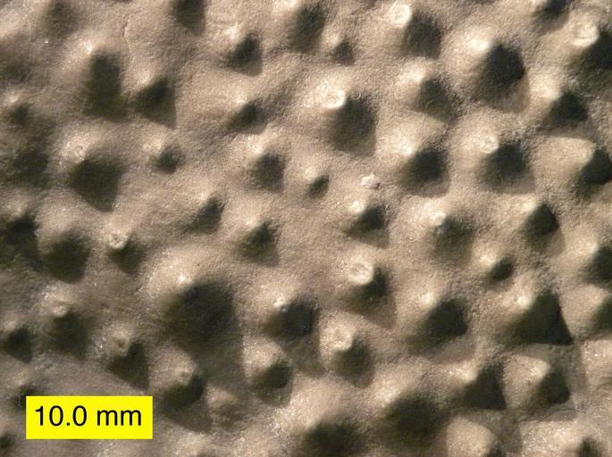 | Keywords: StromatoporoidTopDevColumbus.jpg en Stromatoporoid top view showing mamelons; Columbus Limestone Devonian of Kelleys Island Ohio own Wilson44691 2010-09-20 Photograph taken by Mark A Wilson Department of Geology The College of Wooster http //www3 wooster edu/geology/MWilson html Stromatoporoidea Devonian Animalia |