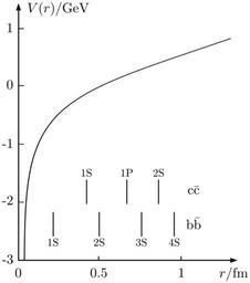 | Keywords: Strong Interaction Potential.svg en Potential V r of strong interaction as a function of distance r between two quarks which can be approximated by <math> V r -\frac 4 3 \frac \alpha r \hbar c r +kr </math> The vertical lines indicate rms radii of different quark-antiquark wave functions Reference Gottfried Weisskopf - Concepts of Particle Physics Vol 1 Oxford University Press 1984 ISBN 9780195043730 2012-07-29 own Franzl aus tirol cc-zero Quantum chromodynamics | ||||