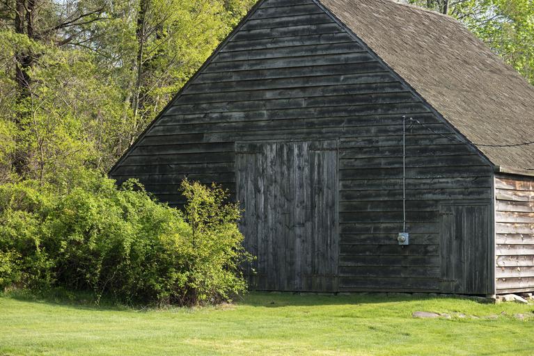 Keywords: structure building outdoors shack shed wooden wood green color spring sunny sunlight