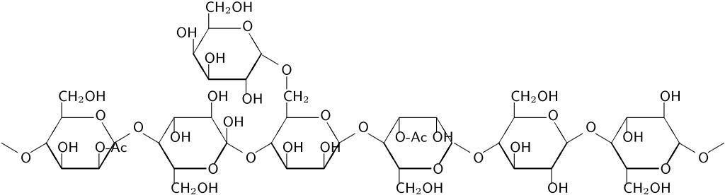 | Keywords: Structure of galactoglucomannan.svg galactoglucomannan Created with LaTeX and XyMTeX own Qtea 2010-04-05 TeX source <source lang latex > \documentclass article \usepackageutf8x inputenc \usepackage xymtex \usepackage graphicx \pagestyle empty \begin document \begin picture 5000 1500 0 0 \let\substfont \sffamily \let\substfontsize \footnotesize \changeunitlength 0 08pt main chain \put -220 -20 \Utrigonal 0 O;2 ;3 \put 0 0 \pyranose 2Sb O-Ac ;3Sb OH;5Sb CH _2 OH \put 660 220 \Dtrigonal 0 O;2 ;3 \put 880 0 \sixsugarh 2 O; 3Sa CH _2 OH ;6Sb OH;5Sa OH;1Sb OH \put 1540 -20 \Utrigonal 0 O;2 ;3 \put 1760 0 \pyranose 2Sb OH;3Sb OH;5Sb CH _2 \put 2420 220 \Dtrigonal 0 O;2 ;3 \put 2640 0 \sixsugarh 2 O; 3Sa CH _2 OH ;6Sa OH;5Sa O-Ac \put 3320 -20 \Utrigonal 0 O;2 ;3 \put 3540 0 \pyranose 2Sa OH;3Sb OH;5Sb CH _2 OH \put 4200 220 \Dtrigonal 0 O;2 ;3 \put 4420 0 \sixsugarh 2 O; 3Sa CH _2 OH ;6Sb OH;5Sa OH \put 5080 -20 \Utrigonal 0 O;2 ;3 side chain \put 1820 670 \Utrigonal 0 O;1 ;3 \put 1150 700 \pyranose 2Sa OH;3Sb OH;4Sb OH;5Sb CH _2 OH \end picture \end document </source> Polysaccharides Images with LaTeX source code |