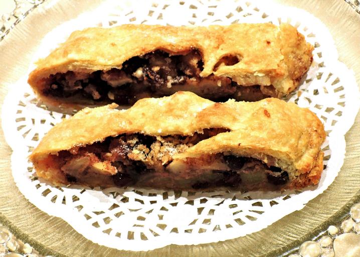 Keywords: strudel pastry apple raisins nuts sweet food