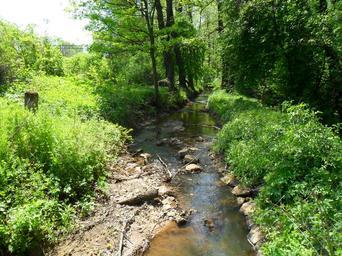 Keywords: Struga Nędza 2.JPG Struga Nędza Zdjęcie wykonane w pobliżu miejsca w którym bieg strugi przecina linia kolejowa nr 151 own 2011-05-10 Olos88 Nędza Żabnica tributary