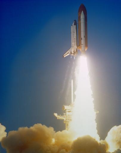 | Keywords: (April 5, 1984) View of the launch of the Shuttle Challenger during the STS 41-C mission. The orbiter has cleared the launch pad with a large cloud of smoke covering the bottom part of the frame. (April 5, 1984) View of the launch of the Shuttle Challenger during the STS 41-C mission. The orbiter has cleared the launch pad with a large cloud of smoke covering the bottom part of the frame. |