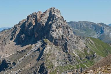 Keywords: outdoor hiking adventure meadow stone summit travel view climbing sunrise rubble rock habicht mountains valley sunny scenery glacier grass summer trekking morning alpine slope alps stubai hut season limestone