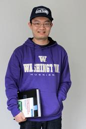 Keywords: student college university young portrait smile school education books textbooks smiling homework asian male hoodie cap glasses washington udub