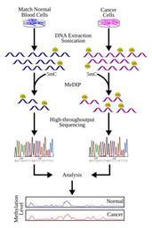 | Keywords: Study-flow.svg en This is a workflow that demonstrates the general strategy in a MeDIP-seq experiment Particularly the example investigates cancer as a general source of disease condition; however the starting source can range from different tissue types or different time points This diagram outlines very briefly the steps in MeDIP-seq including the use of software for aligning short reads depicted at the High-throughput Sequencing step At the anlysis stage a graph can be used to visualize and compare methylation levels between experimental sample i e cancer/disease state tissue-specific time-specific etc and the control i e normal/blood cells baseline time-point normal tissue etc The peaks show in the plot can essentially represent the frequency or short reads that have been aligned to the particular region in the genome The more reads that cover a particular region then the higher the methylation level This can be explained by MeDIP having enriched for methylated DNA at this region The plot and data in this diagram is entirely simulated and does not represent real MeDIP-seq data; this is to simply display typical visualization that can be used during MeDIP-seq analysis Study-flow jpg 50 2013-06-15 17 13 UTC Study-flow jpg Gavinha derivative work Shakiestone svg Study-flow jpg Biochemistry methods Diagrams illustrations and schemas concerning cancer DNA methylation |