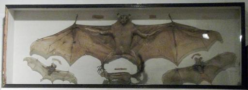 | Keywords: StuffedBatBedfordMuseum.JPG en A display including a fruit bat the large bat in the center incorrectly labeled a vampire bat and 2 spear nosed bats in Bedford Museum One of the things that came to the museum from the old Bedford Modern School Museum own Simon Speed 2010-09-28 Photos by Simon Speed Bedford Museum Bedford Unidentified Chiroptera Taxidermied Chiroptera Unidentified Sciuridae Taxidermied Rodentia | ||||